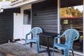 , Küche (Kochherd (elektrisch), Kaffeemaschine, Kühl-/Gefrierkombination), Wohn-/Schlafzimmer (TV (dänische Fernsehsender), Kaminofen), Schlafzimmer (Doppelbett), Schlafzimmer (Doppelbett), Schlafzimmer (Doppelbett), Badezimmer (Waschbecken, Dusche, Toilette), Heizung (elektrisch), Terrasse, Garten, Gartenmöbel, Luft-Luft-Wärmepumpe