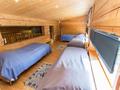 This holiday destination offers both space and atmosphere. On the middle floor, you'll find two bedrooms - one with a comfortable double bed and the other with two separate beds. Additionally, the spacious loft features four beds, and the basement includes a pull-out sofa. The cabin accommodates up to eight people.