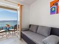 "Marina", 3-Zimmer-Wohnung 53 m2, im Erdgeschoss. Renoviert im Jahre 2019: Wohn-/Esszimmer mit 1 Diwanbett, Sat-TV und Klimaanlage. Ausgang zum Balkon. 1 Zimmer mit 1 franz. Bett (160 cm, Länge 200 cm), Sat-TV und Klimaanlage. Ausgang zum Balkon. 1 Zimmer mit 2 Betten (90 cm, Länge 200 cm). Ausgang zum Balkon. Offene Küche (Backofen, Geschirrspüler, 4 Induktionskochplatten, Toaster, Mikrowelle, Tiefkühler, elektrische Kaffeemaschine). 2 Duschen/WC. Keine Heizmöglichkeit. Balkon. Balkonmöbel. Sicht auf das Meer. Zur Verfügung: Internet (Wireless LAN, gratis). Bitte beachten: Nichtraucher-Haus. Maximal 1 Haustier/Hund erlaubt.
