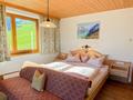 6-Zimmer-Wohnung 150 m2 auf 2 Stockwerken. Einfach und rustikal eingerichtet: grosses Esszimmer mit Sat-TV (Flachbildschirm). Küche (Backofen, Geschirrspüler, 4 Glaskeramikplatten, Wasserkocher, elektrische Kaffeemaschine) mit kleinem Esstisch. Obergeschoss: 4 Doppelzimmer, jedes Zimmer mit Waschbecken. Ausgang zum Balkon. Sep. WC, Bad/Dusche/WC. Heizung. Teppichboden. Balkon. Balkonmöbel. Schöne Panoramasicht. Zur Verfügung: Kinderhochstuhl, Babybett. Internet (WLAN, gratis). Bitte beachten: Nichtraucher-Haus. Im EG befindet sich noch eine Wohnung, die von anderen Gästen benutzt wird.